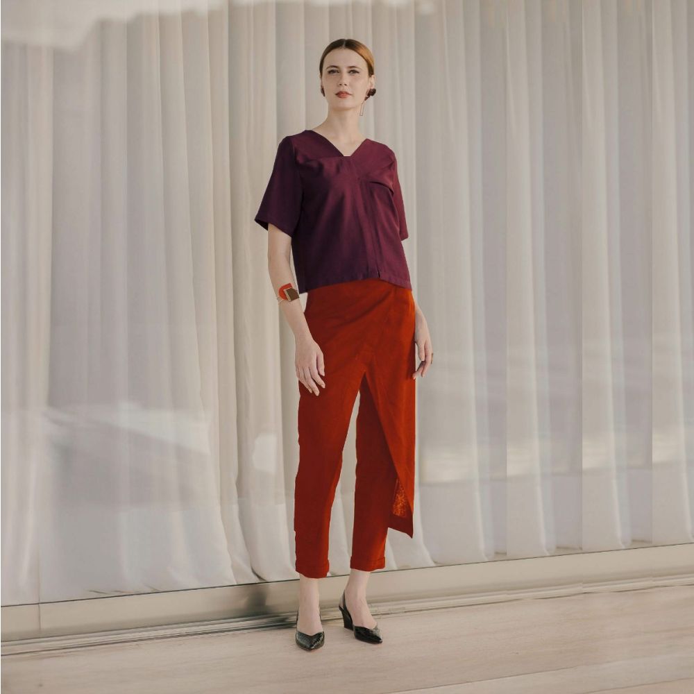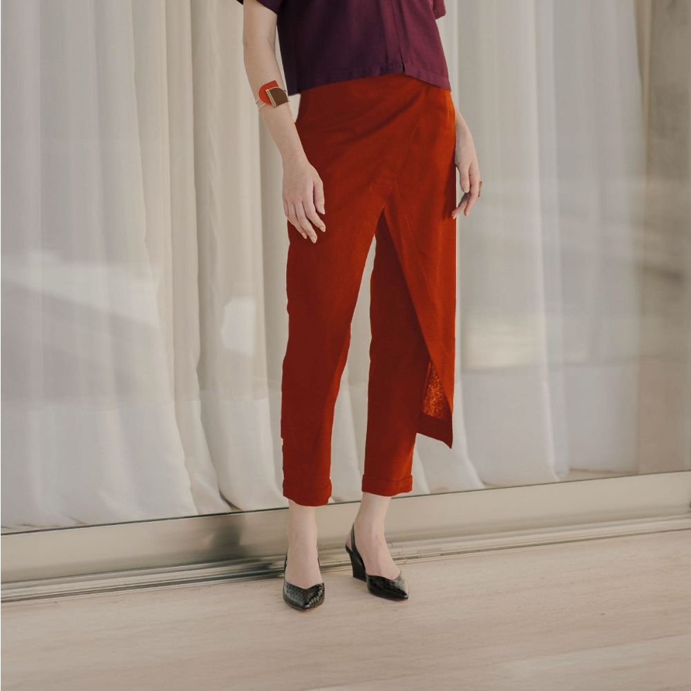 A nossa calça de alfaiataria com sobreposições frontais se tornou um clássico da Jardin. Um modelo que produzimos sempre em diversas cores e atendendo a pedidos, desta vez no vermelho. Fácil de combinar, é uma peça STATEMENT que transforma qualquer produção. O estilo minimalista da peça aliada a escolha do tecido em linho, traz o toque clássico e atemporal de uma peça de alfaiataria e ao mesmo tempo é uma calça conceitual e moderna. O corte tipo cenoura com as sobreposições em V alonga visualmente, e cria um movimento interessante do tecido ao andar. É o tipo de peça versátil, que funciona com peças mais clássicas, como camisas, mas também com peças estilosas e despojadas, criando looks únicos! Composição: 70% Viscose, 30% Linho. A modelo mede 1,76 mts e veste 36.