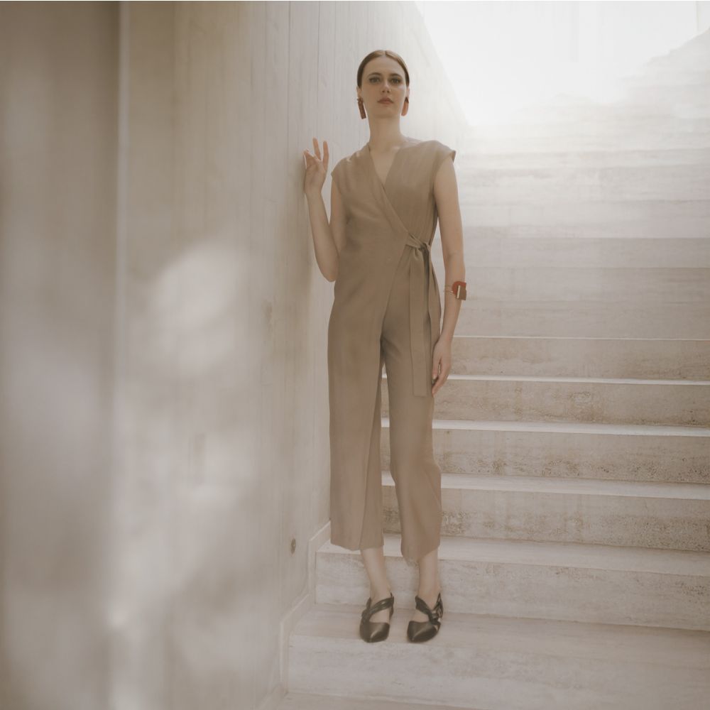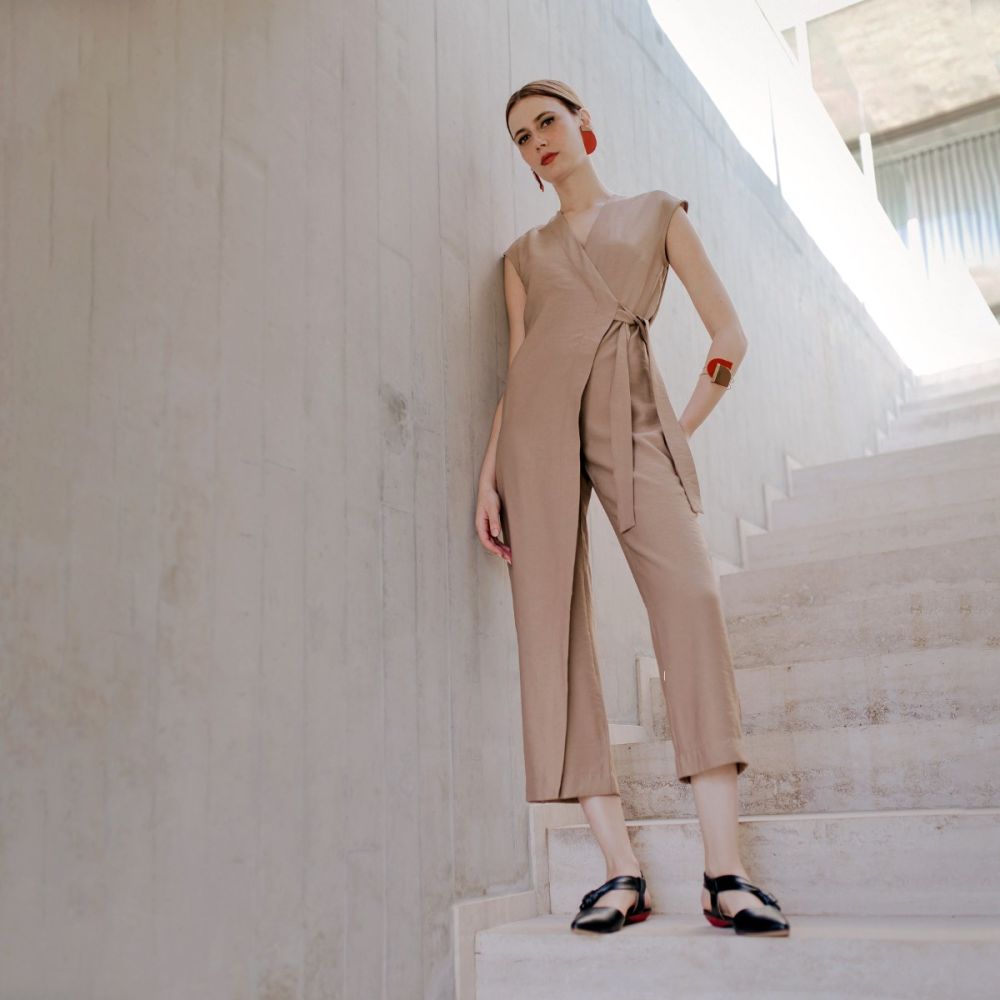 Um dos nossos queridinhos da coleção, este macacão é aquela peça que vale por um look inteiro - e te deixa bem vestida e elegante para várias ocasiões! Possui uma sobreposição assimétrica que trespassa a frente e amarra na lateral na altura da cintura. Apresenta uma sobreposição frontal assimétrica com amarração lateral na cintura, decote em V e corte que valoriza a silhueta sem marcar. O design do trespasse cria uma linha diagonal que alonga visualmente o corpo. É uma peça que pode ser usada com salto em situações mais formais ou com sapatos mais modernos e estilosos, para compor looks despojados e fashionistas. Conforto e elegância podem sim andar juntos! A modelo mede 1,76 MT e usa tamanho 36.